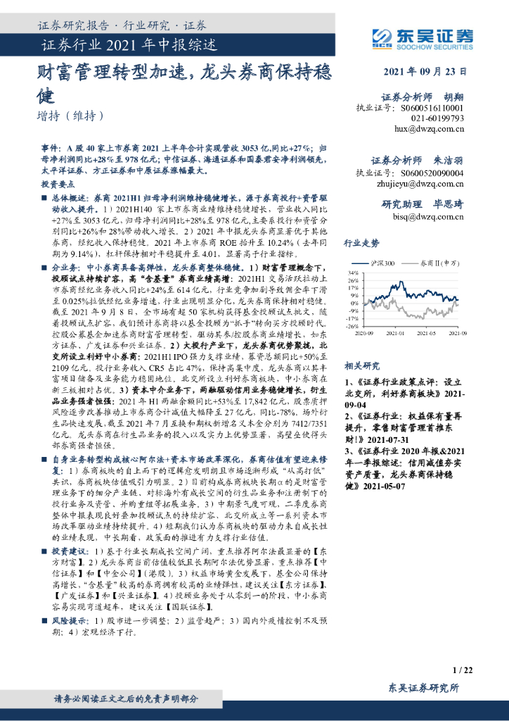 东吴证券:证券行业2021年中报综述:财富管理转型加速,龙头券商保持稳健.pdf