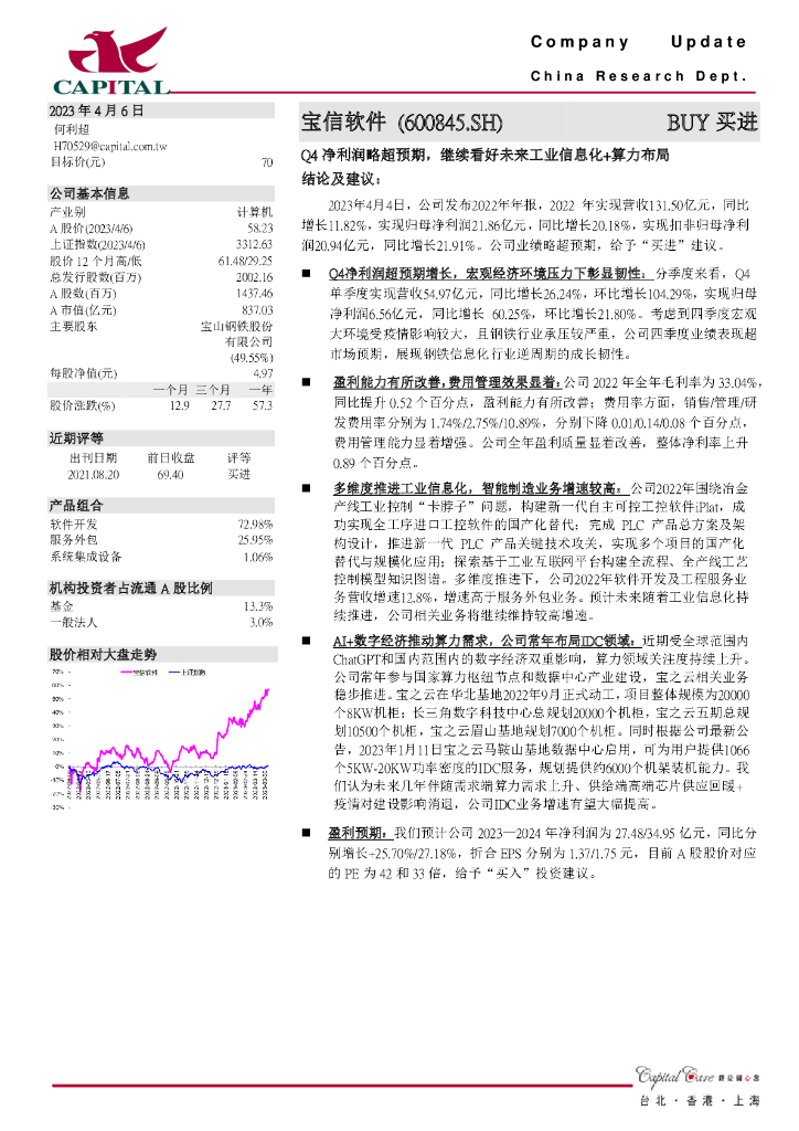 群益证券:宝信软件(600845)-Q4净利润略超预期,继续看好未来工业信息化+算力布局.pdf