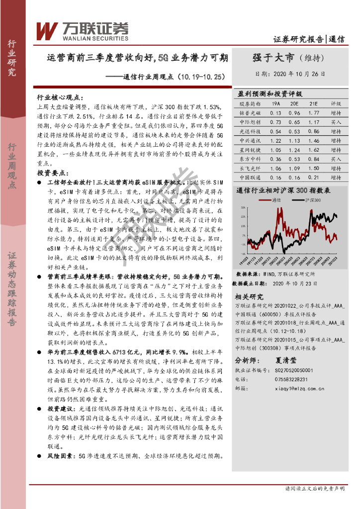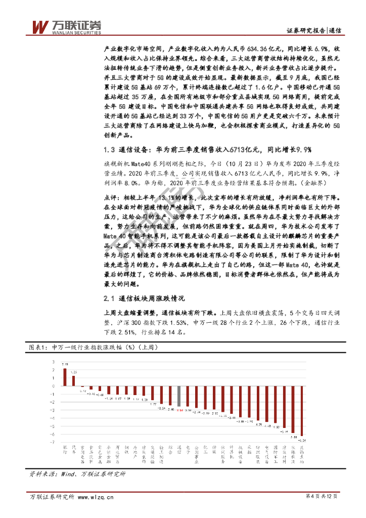 万联证券:通信行业周观点:运营商前三季度营收向好,5G业务潜力可期.pdf