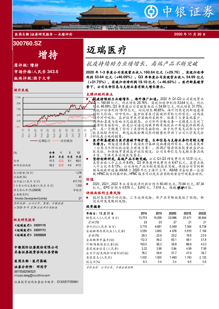 中银证券:迈瑞医疗(300760)-抗疫持续助力业绩增长,高端产品不断突破.pdf