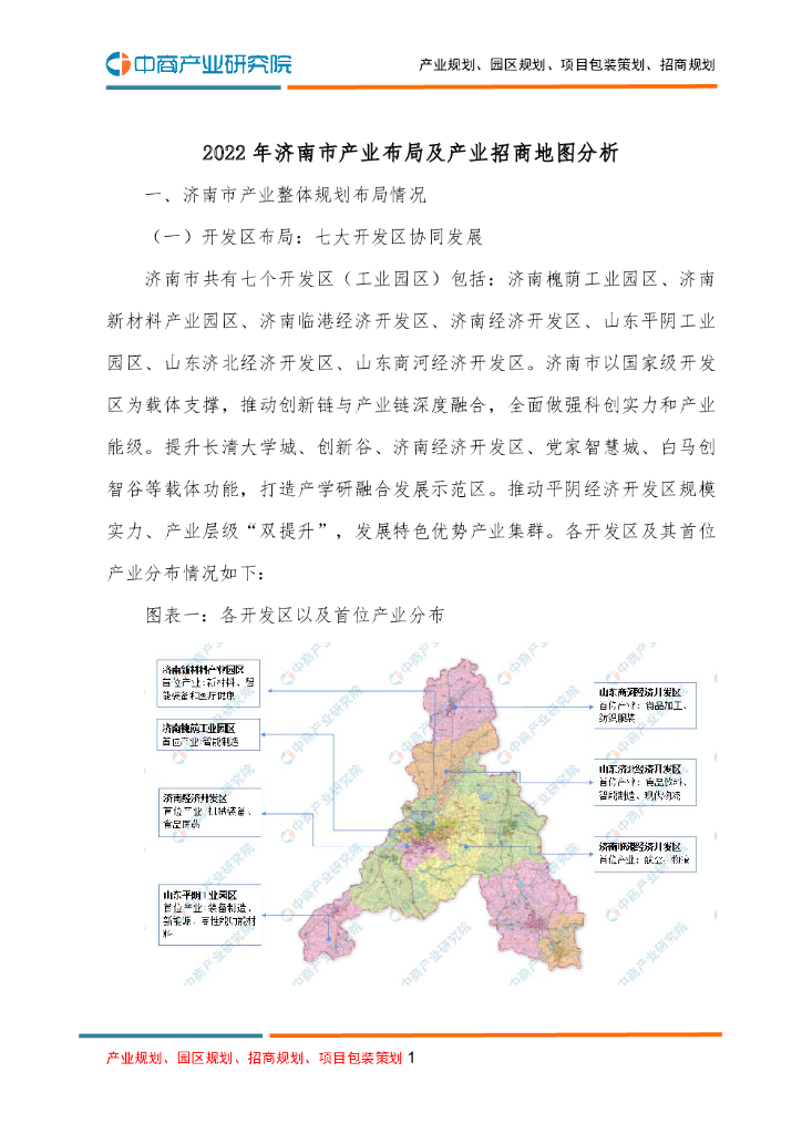 中商产业研究院:2022年济南市产业布局及产业招商地图分析.pdf