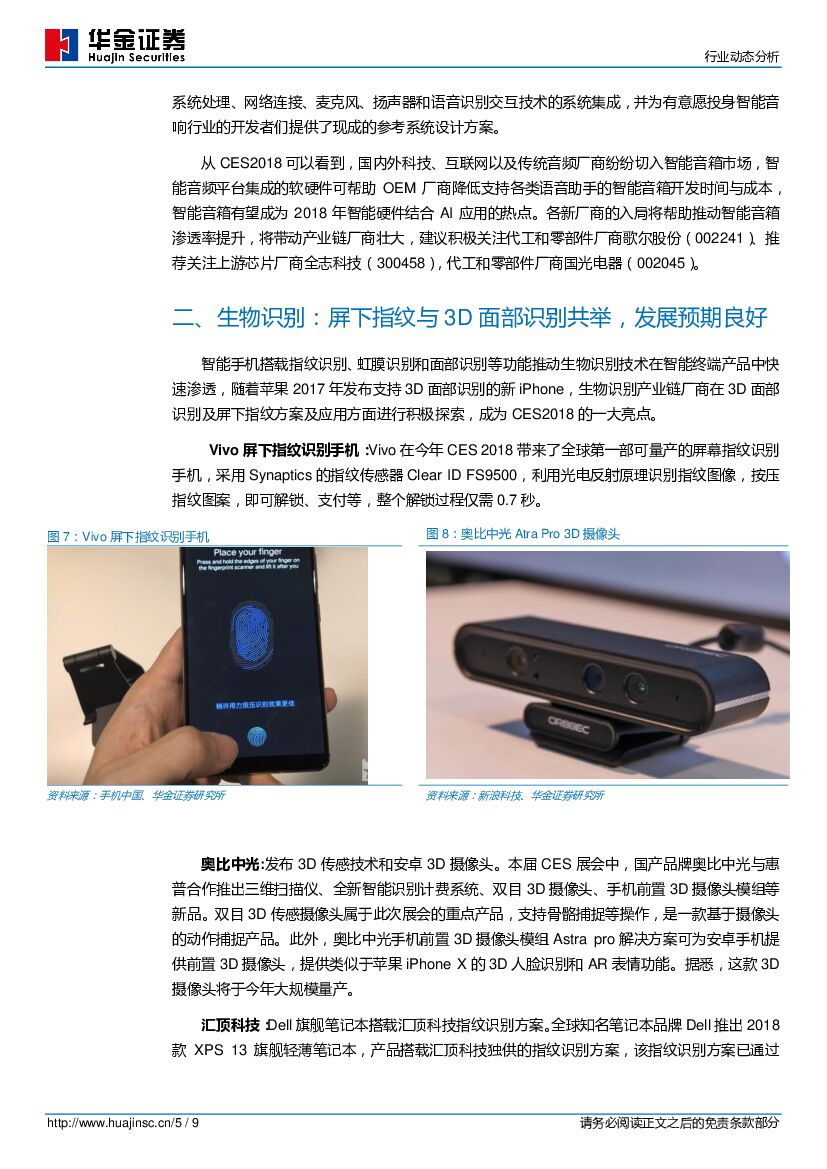 华金证券:电子元器件行业动态分析:CES2018,智能音箱、生物识别和AR/VR引领行业发展方面.pdf