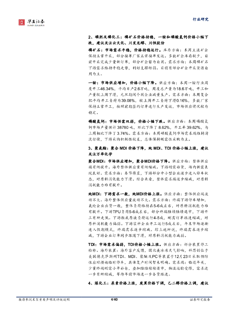 华安证券:基础化工行业周报:卫星化学新材料一体化项目开工,涤纶短纤、PET、磷肥、MDI价差扩大.pdf