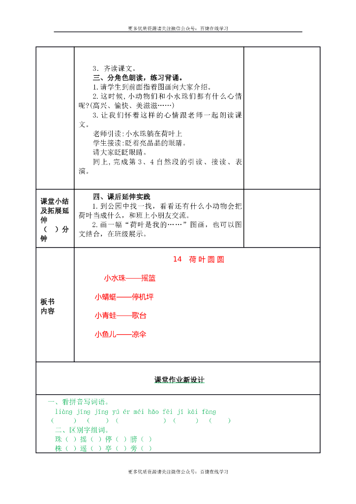 一年级语文下册一下--13 荷叶圆圆.doc