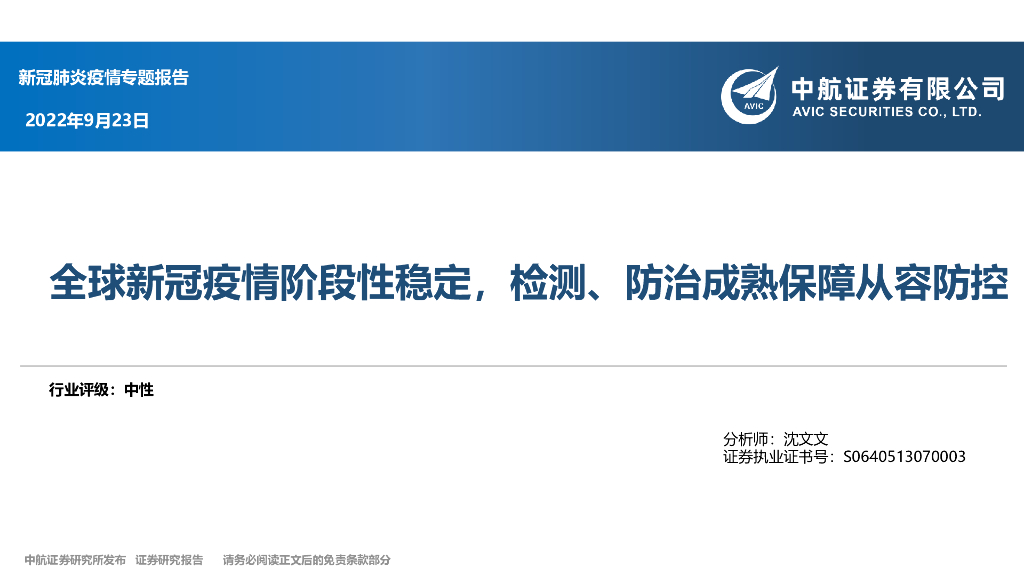 中航证券:新冠肺炎疫情专题报告:全球新冠疫情阶段性稳定,检测、防治成熟保障从容防控.pdf