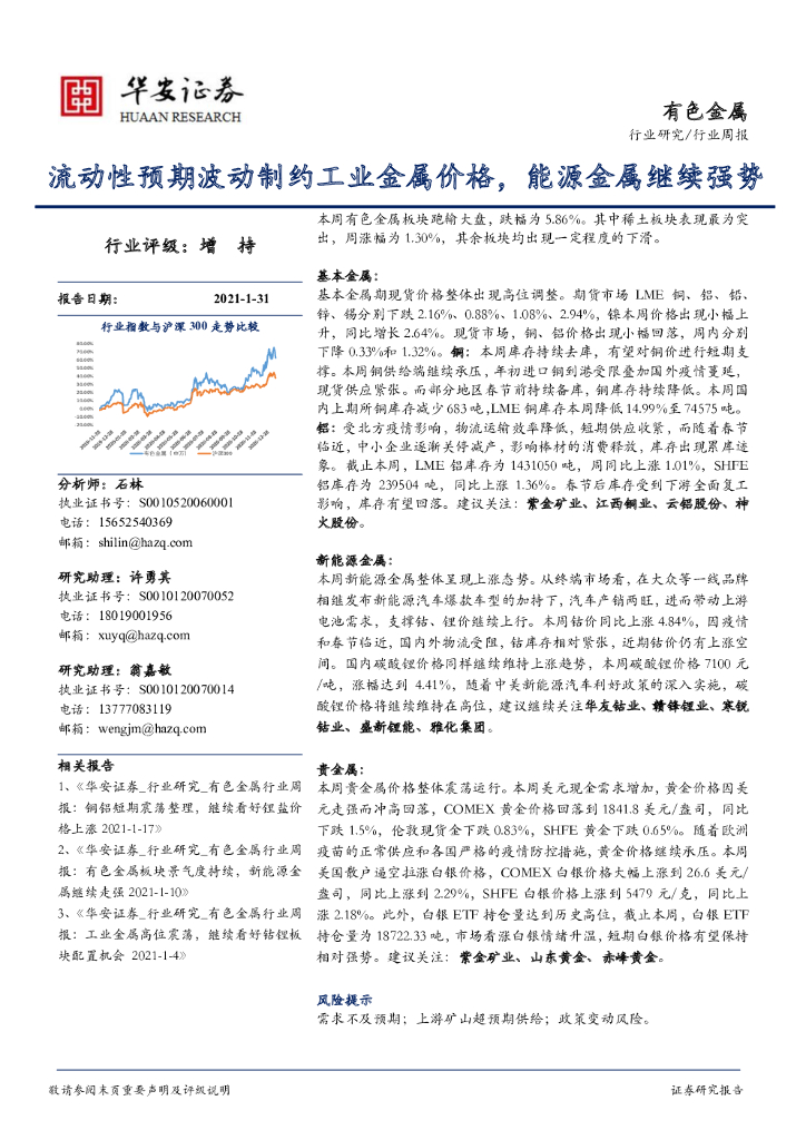 华安证券:有色金属行业周报:流动性预期波动制约工业金属价格,能源金属继续强势.pdf