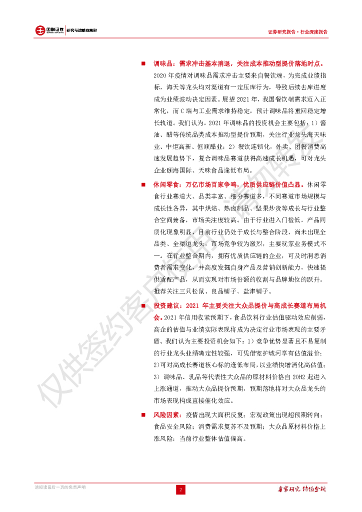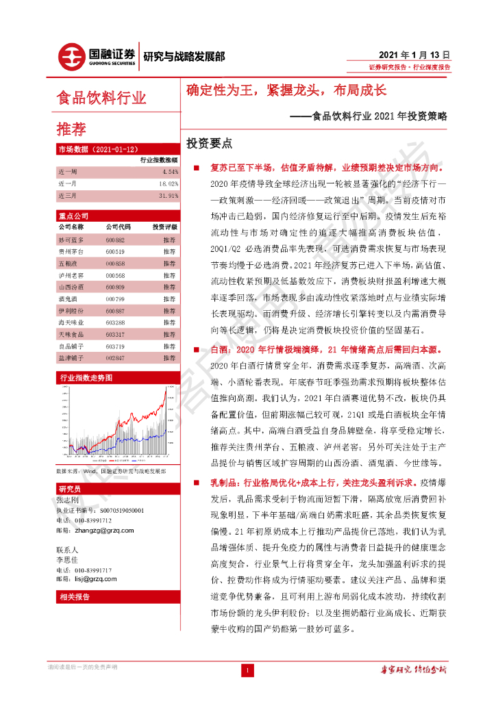 国融证券:食品饮料行业2021年投资策略:确定性为王,紧握龙头,布局成长.pdf