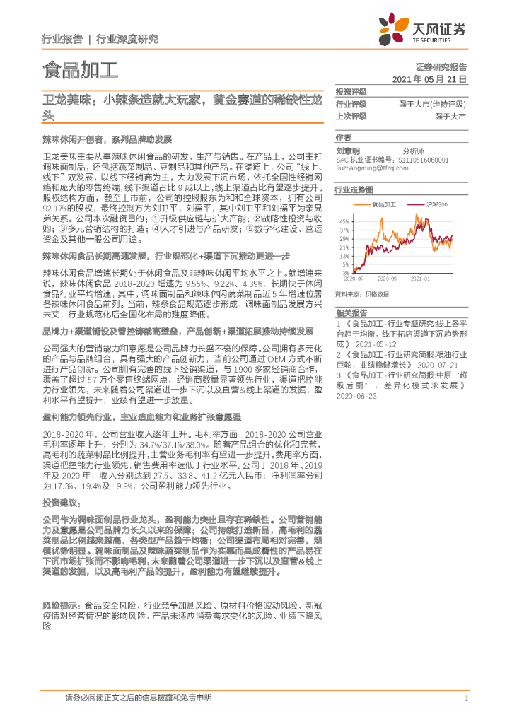 天风证券:食品加工行业:卫龙美味:小辣条造就大玩家,黄金赛道的稀缺性龙头.pdf