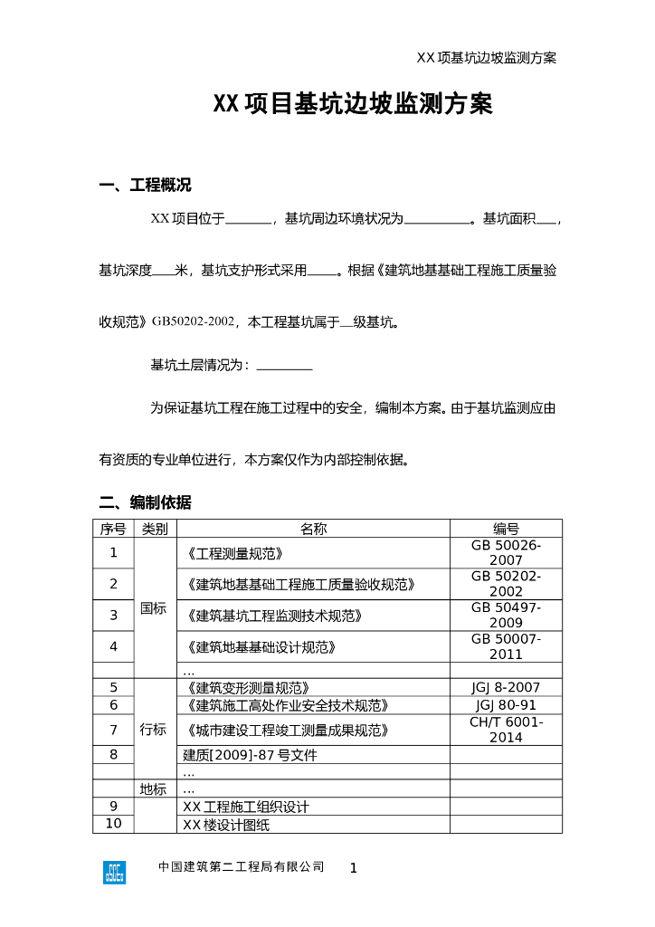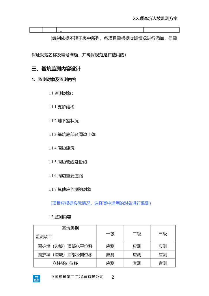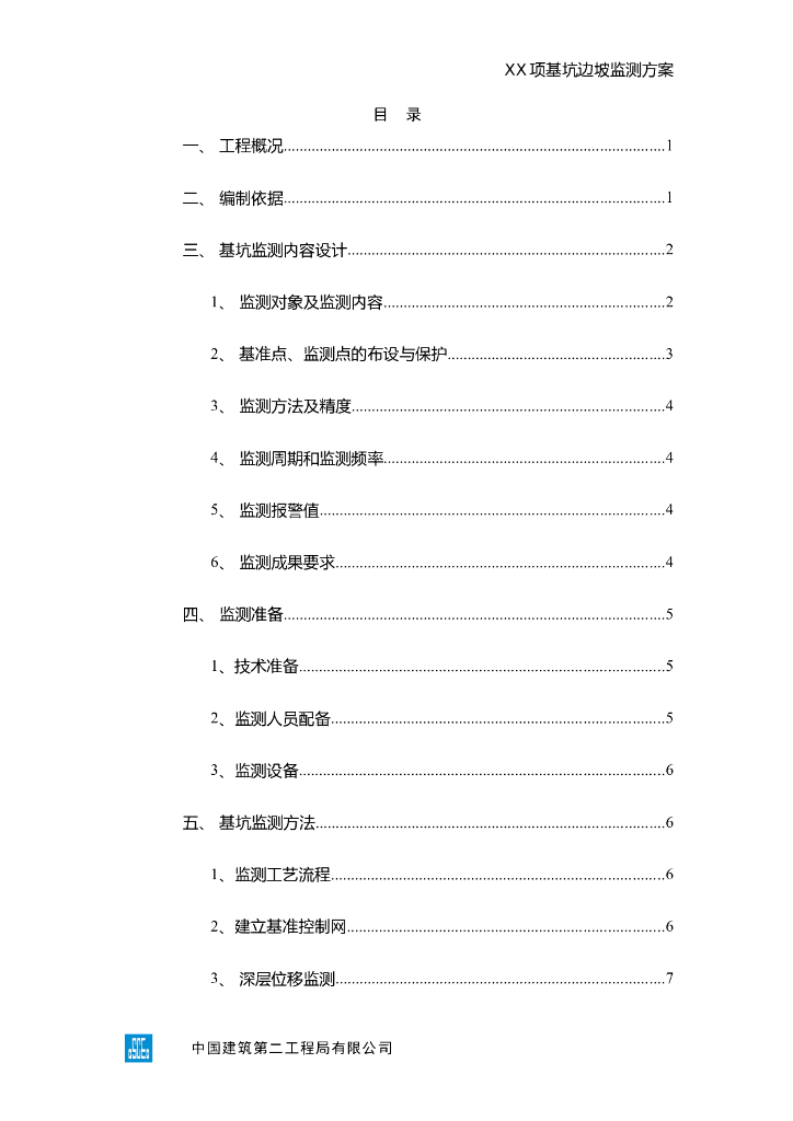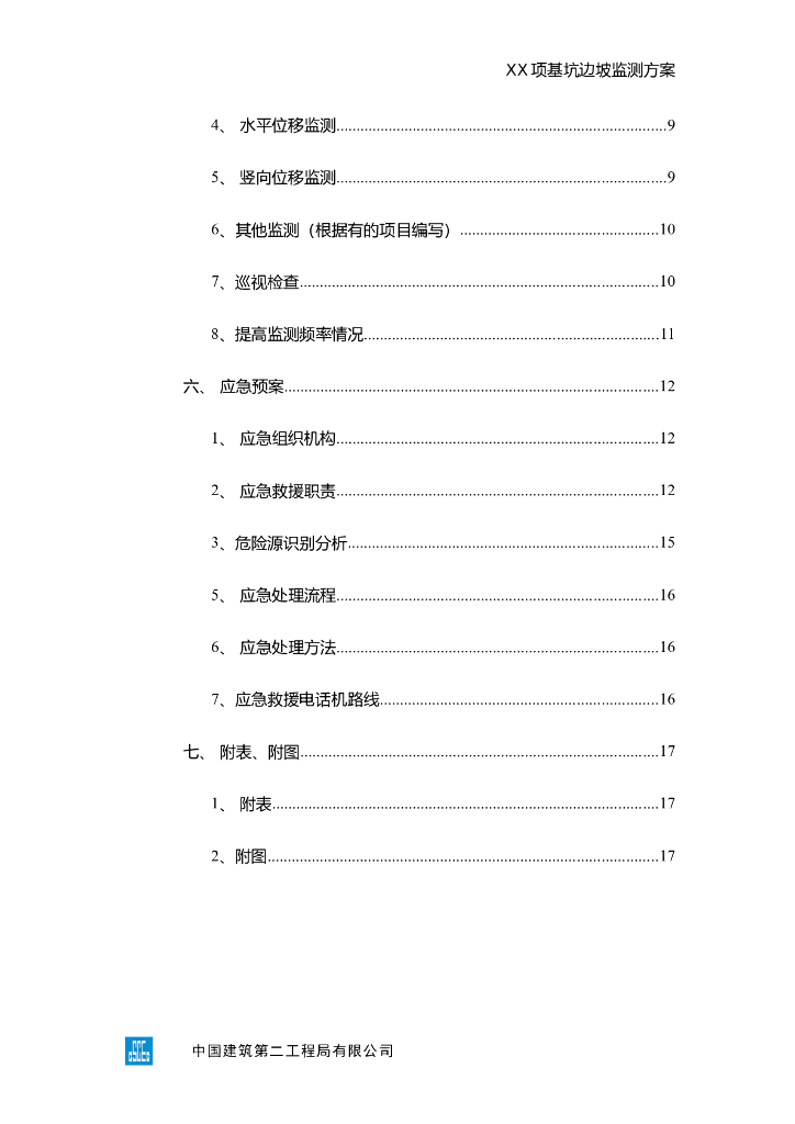 [国企]基坑边坡监测方案模板含应急预案.doc