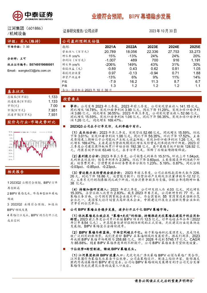 中泰证券:江河集团(601886)-业绩符合预期,BIPV幕墙稳步发展.pdf