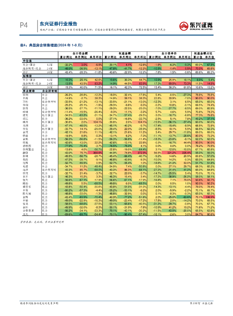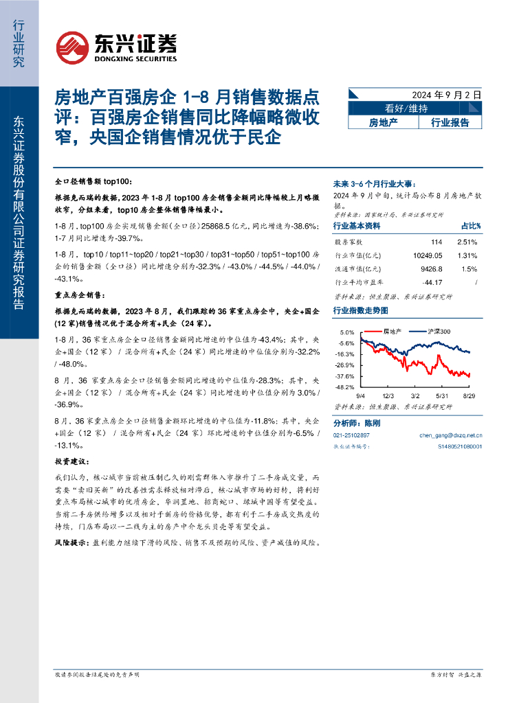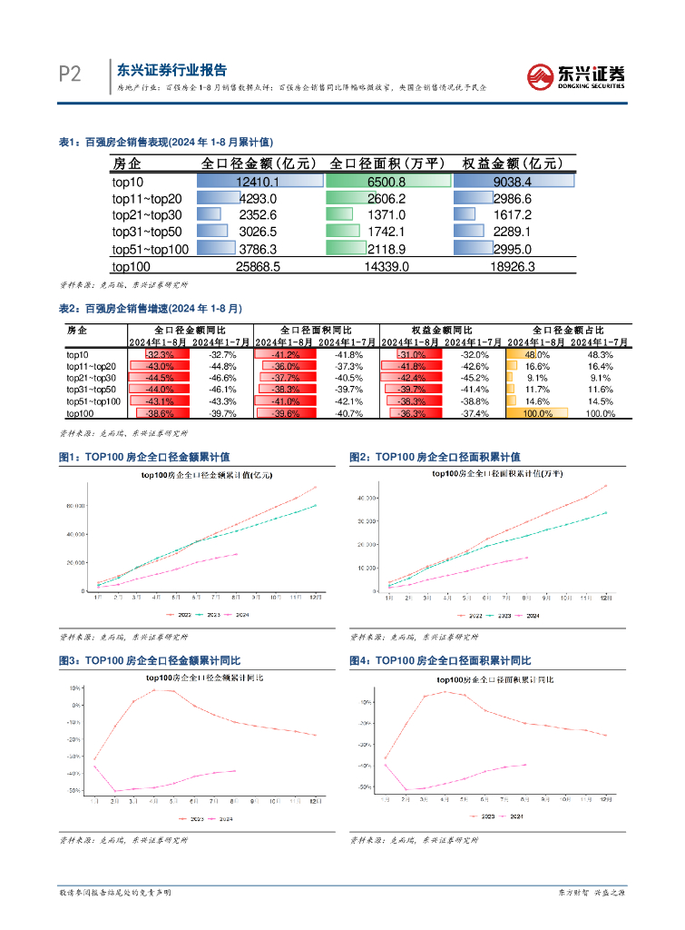 东兴证券:房地产百强房企1-8月销售数据点评:百强房企销售同比降幅略微收窄,央国企销售情况优于民企.pdf