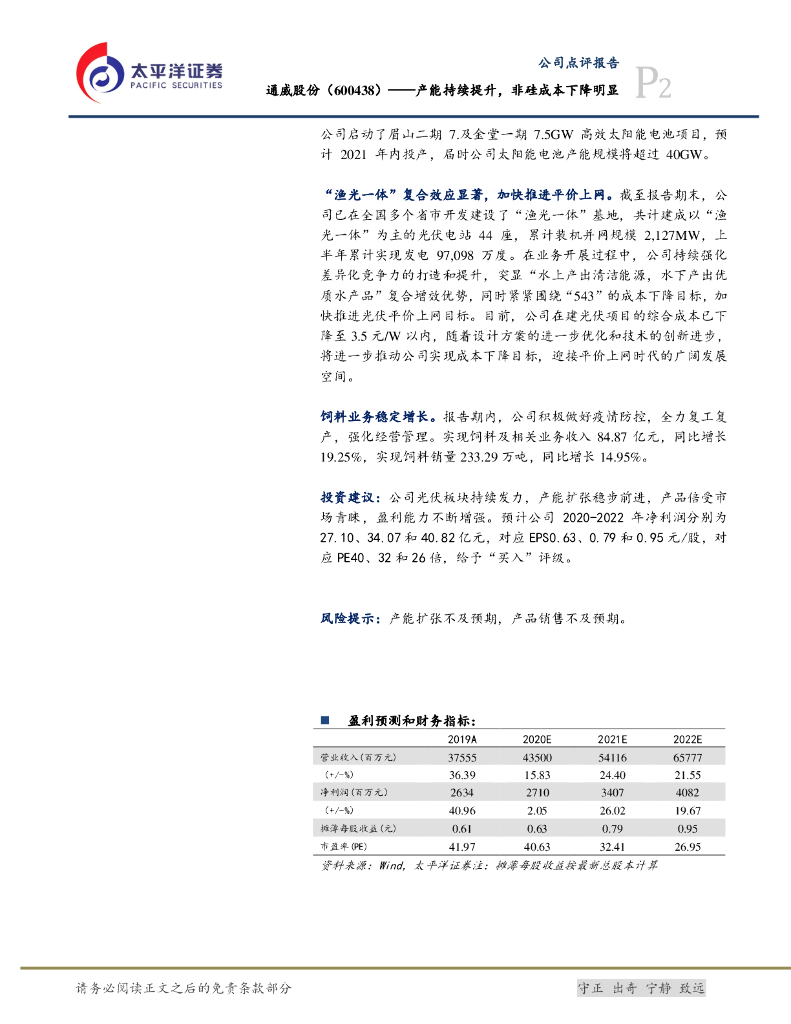 太平洋证券:通威股份(600438)-中报业绩点评:产能持续提升,非硅成本下降明显.pdf