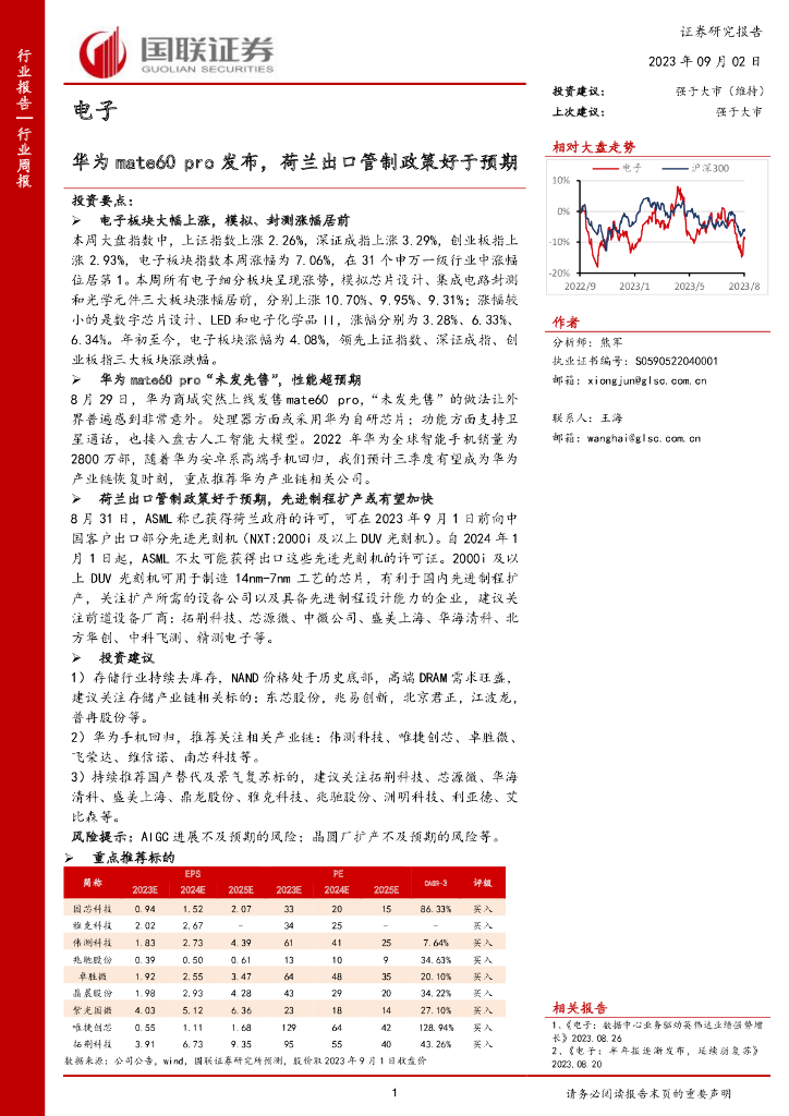 国联证券:电子:华为mate60 pro发布,荷兰出口管制政策好于预期.pdf