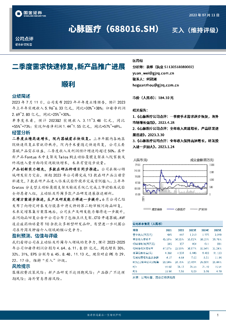 国金证券:心脉医疗(688016)-二季度需求快速修复,新产品推广进展顺利.pdf