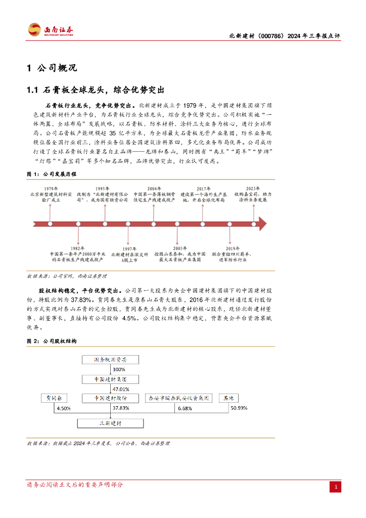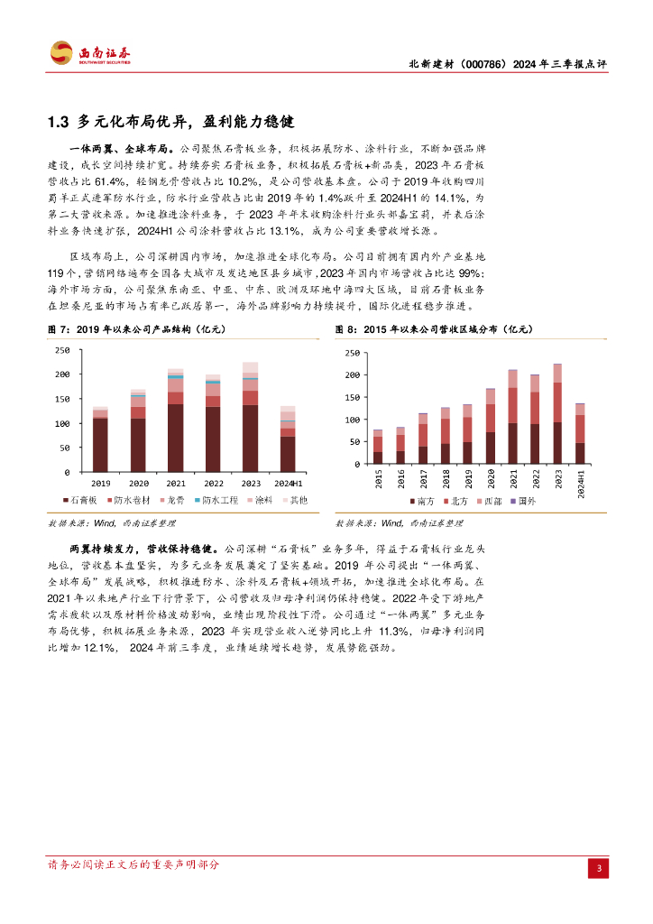 西南证券:北新建材(000786)-2024年三季报点评:一体两翼多元布局,经营势能十分强劲.pdf