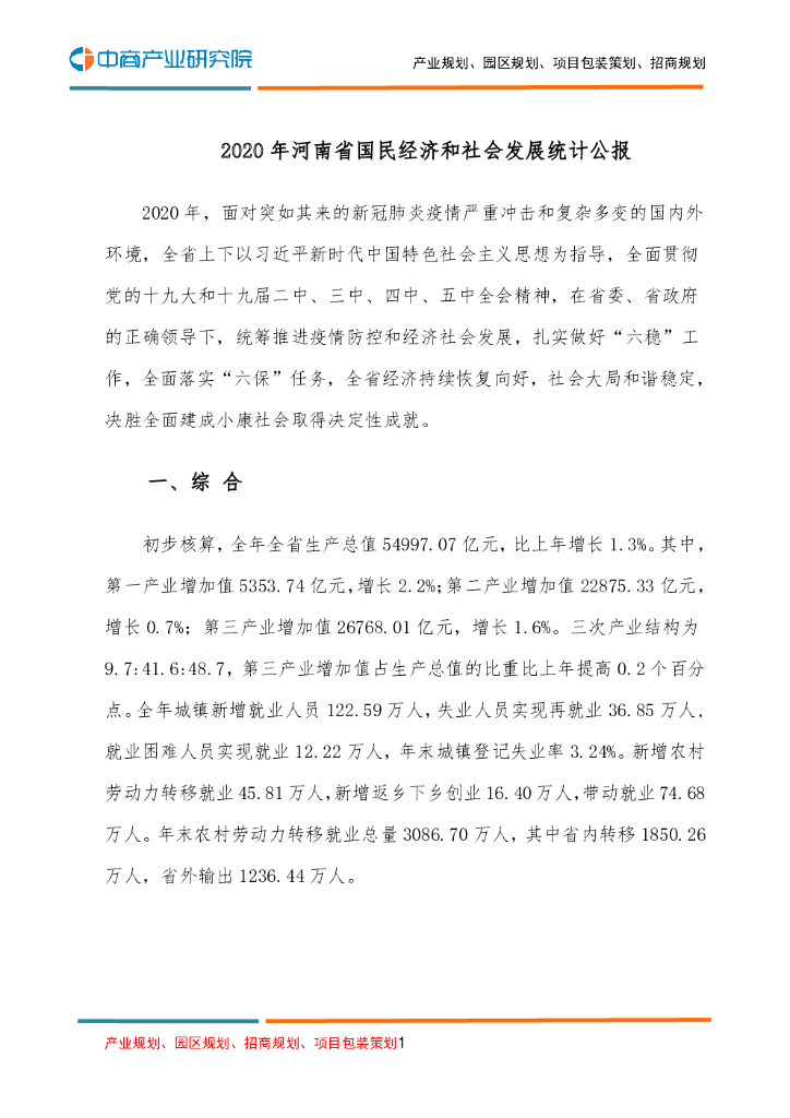 中商产业研究院:2020年河南省国民经济和社会发展统计公报.pdf