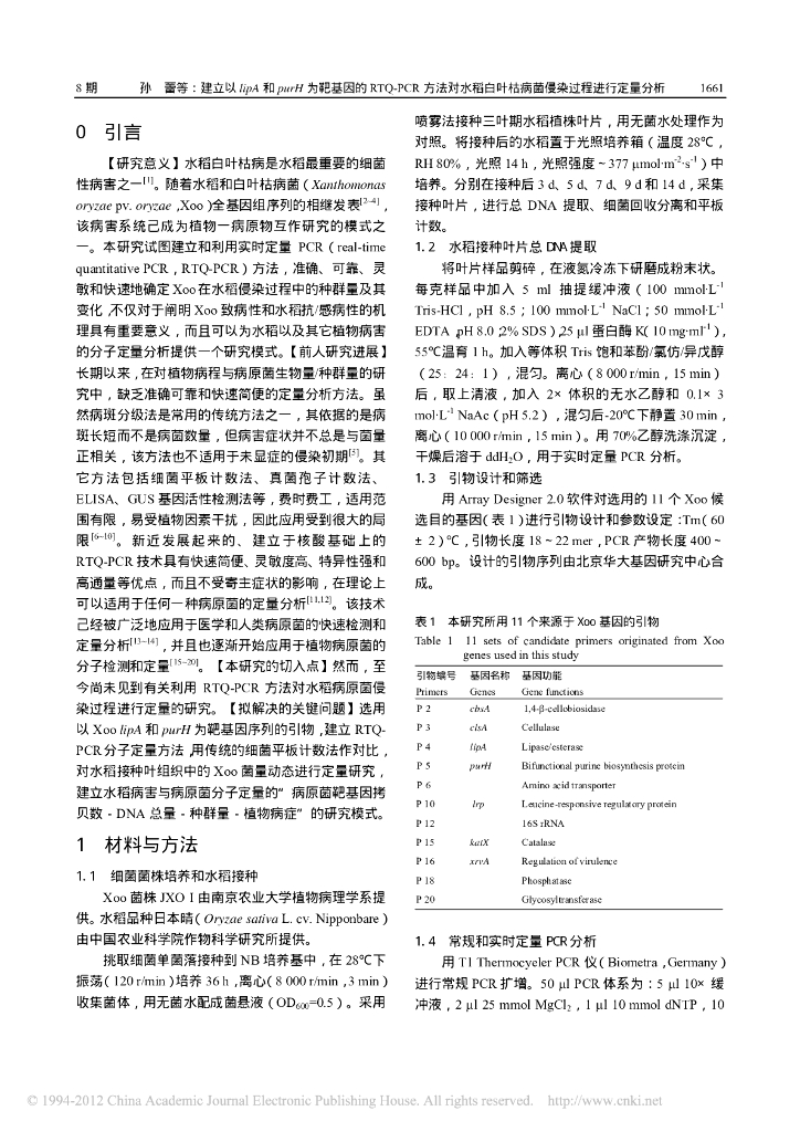 《园林植物栽培技术》建立以lipA和purH为靶基因的RTQ-PCR方法对水稻白叶枯病菌侵染过程进行定量分析.pdf