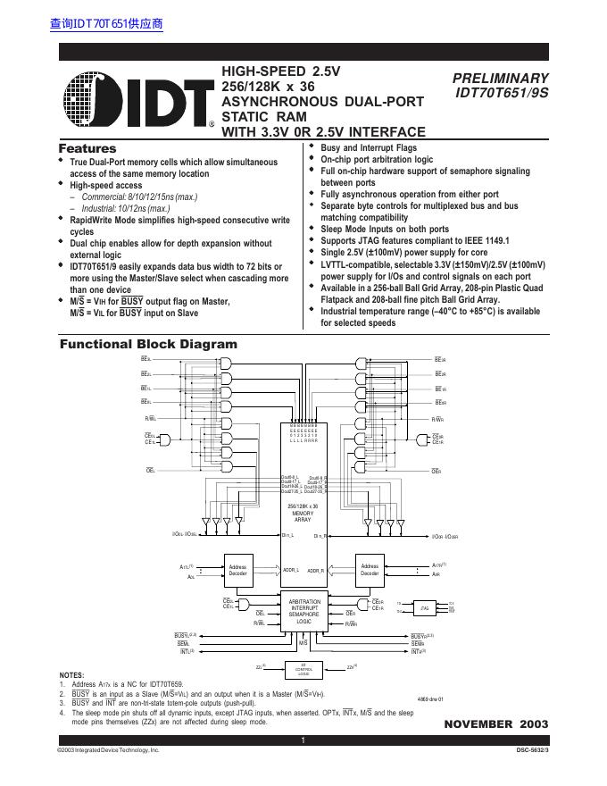 IDT PRELIMINARY IDT70T651/9S 数据手册.pdf