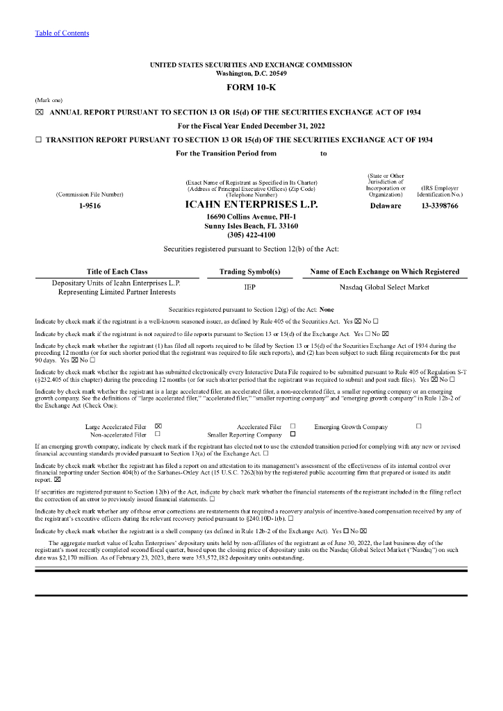 Icahn Enterprises L.P.(IEP)2022财年年度报告(英文版).pdf