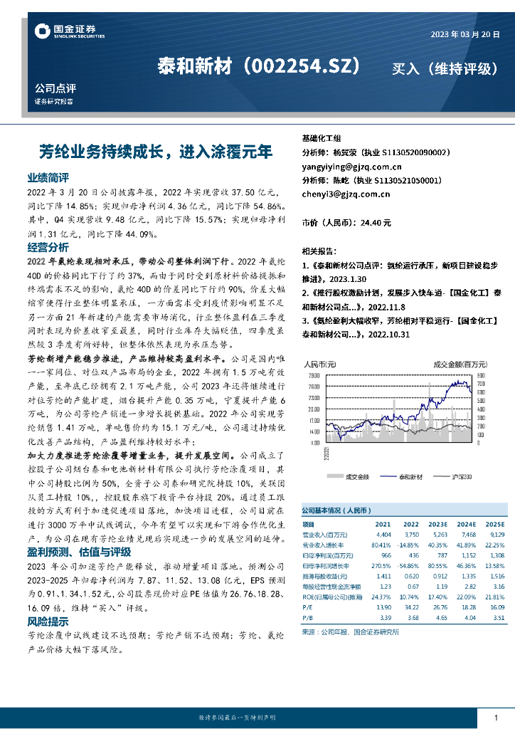 国金证券:泰和新材(002254)-芳纶业务持续成长,进入涂覆元年.pdf