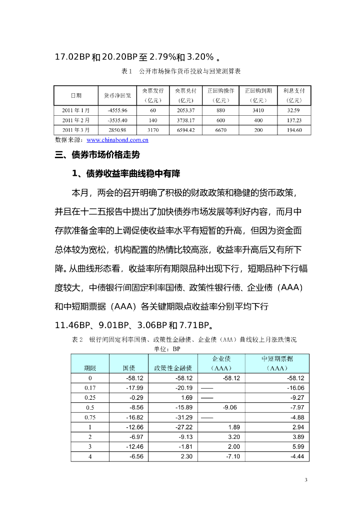 中债研发中心:2011年3月份债券市场分析报告.doc