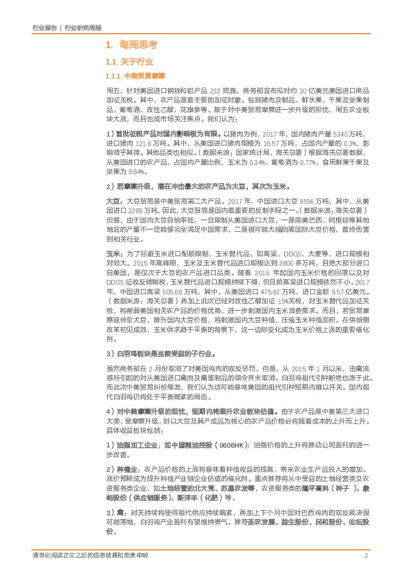 天风证券:农林牧渔2018年第12周周报: 中美贸易战助推农产品涨价预期,本周推荐动保双雄+海大集团!.pdf