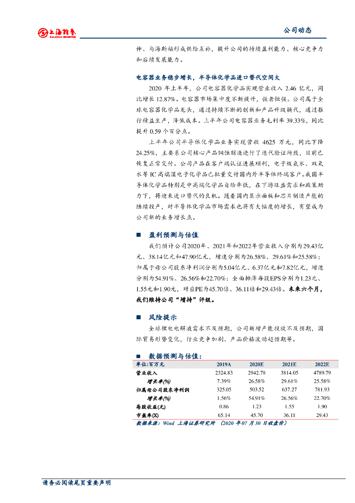 上海证券:新宙邦(300037)-2020年中报简评:业绩高速增长,公司盈利能力出众.pdf
