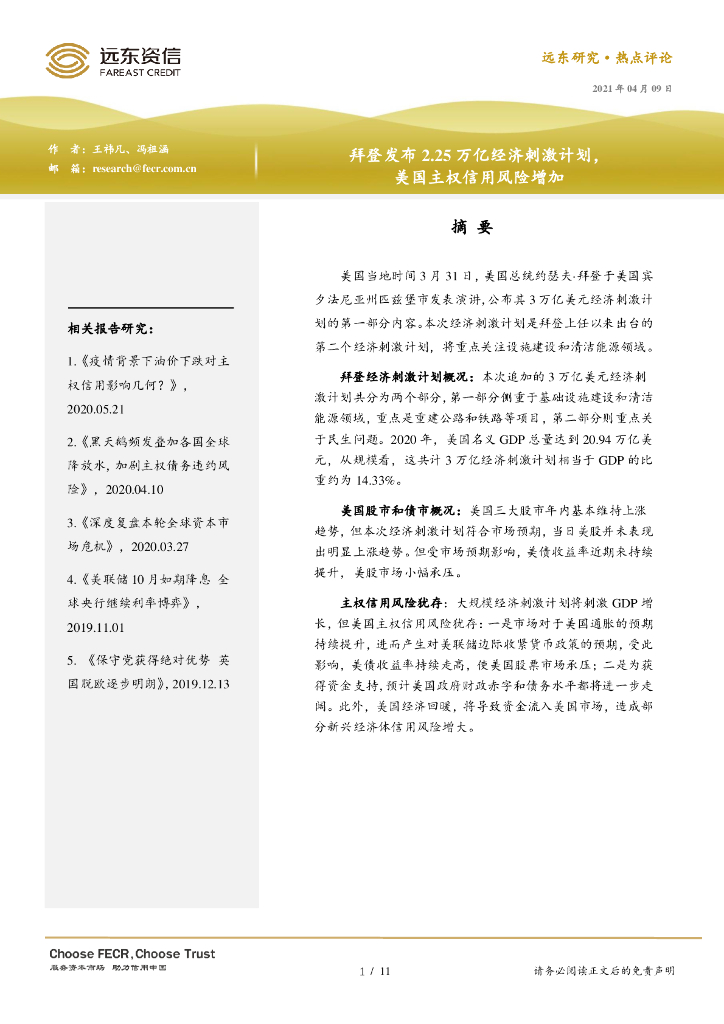 远东资信:拜登发布2.25万亿经济刺激计划,美国主权信用风险增加.pdf