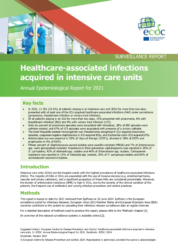 欧洲疾控中心:重症监护病房获得的医疗保健相关感染-2021年年度流行病学报告(英文版).pdf
