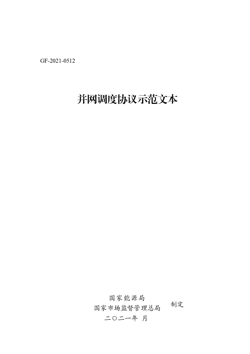 GF-2021-0512 国家能源局:并网调度协议(示范文本).doc