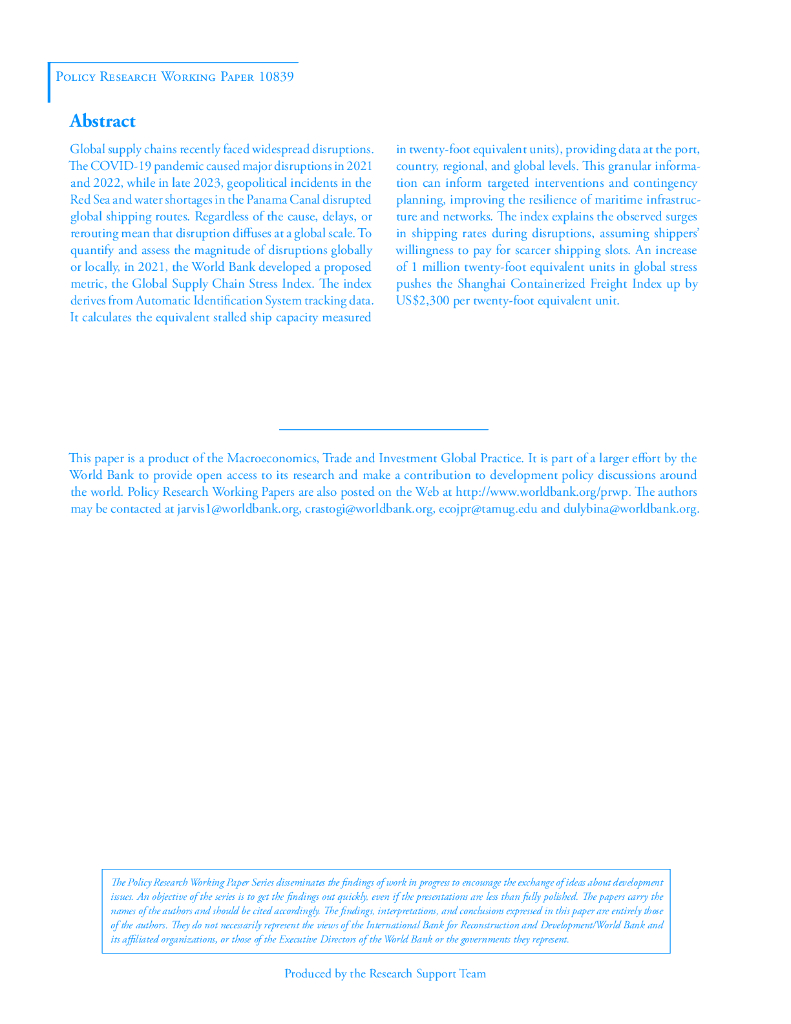 世界银行:全球海运供应链中断的度量:全球供应链压力指数(GSCSI)(英文版).pdf