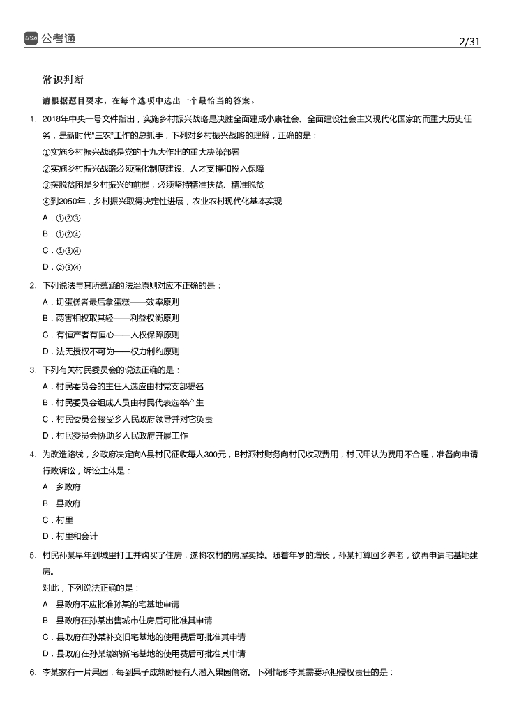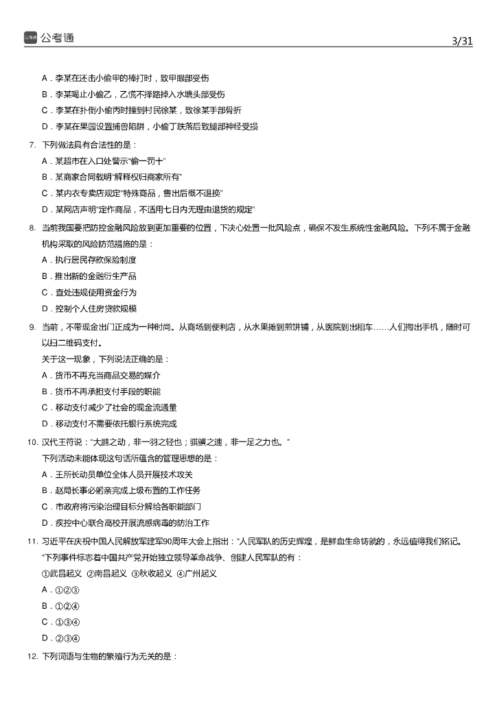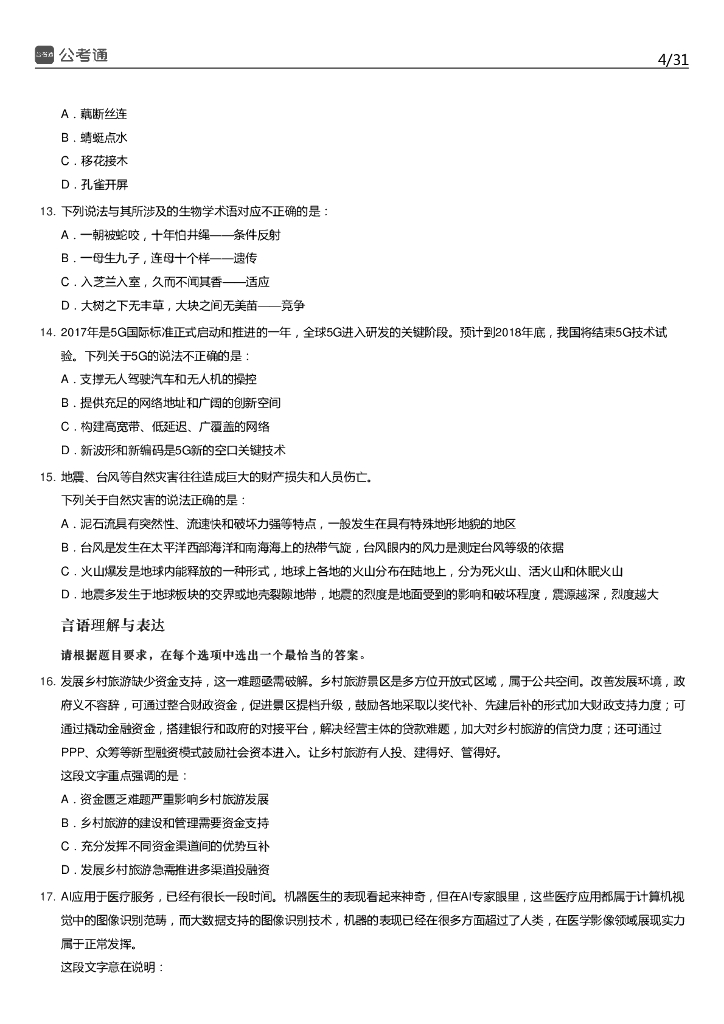 2018年江苏公务员考试行测真题及答案(C类).pdf