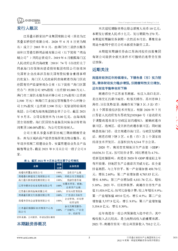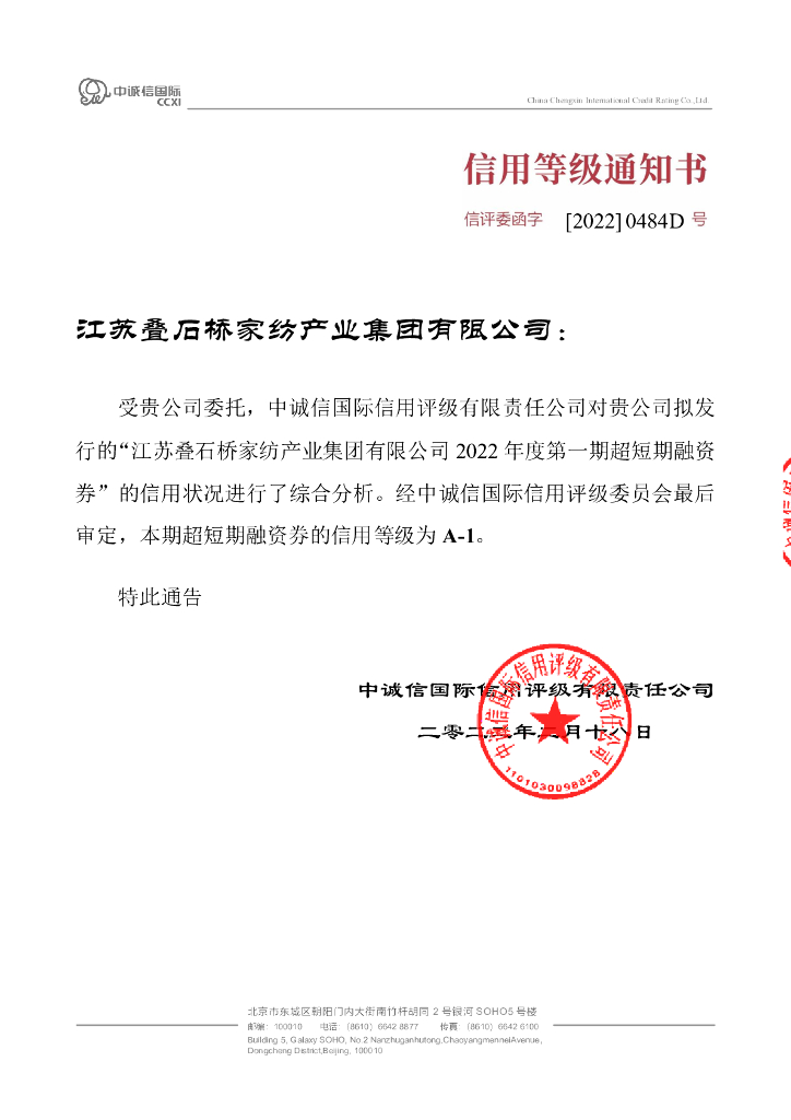 中诚信:江苏叠石桥家纺产业集团有限公司2022年度第一期超短期融资券信用评级报告.pdf