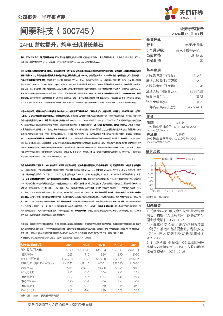 天风证券:闻泰科技(600745)-24H1营收提升,筑牢长期增长基石.pdf