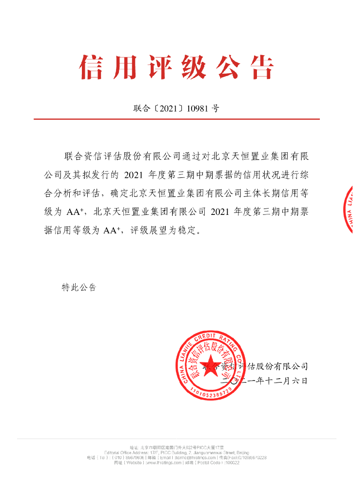 联合资信:北京天恒置业集团有限公司主体信用评级报告.pdf