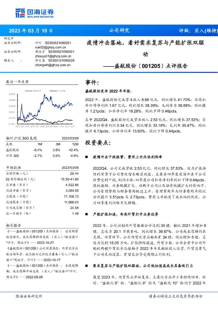 国海证券:盛航股份(001205)-点评报告:疫情冲击落地,看好需求复苏与产能扩张双驱动.pdf