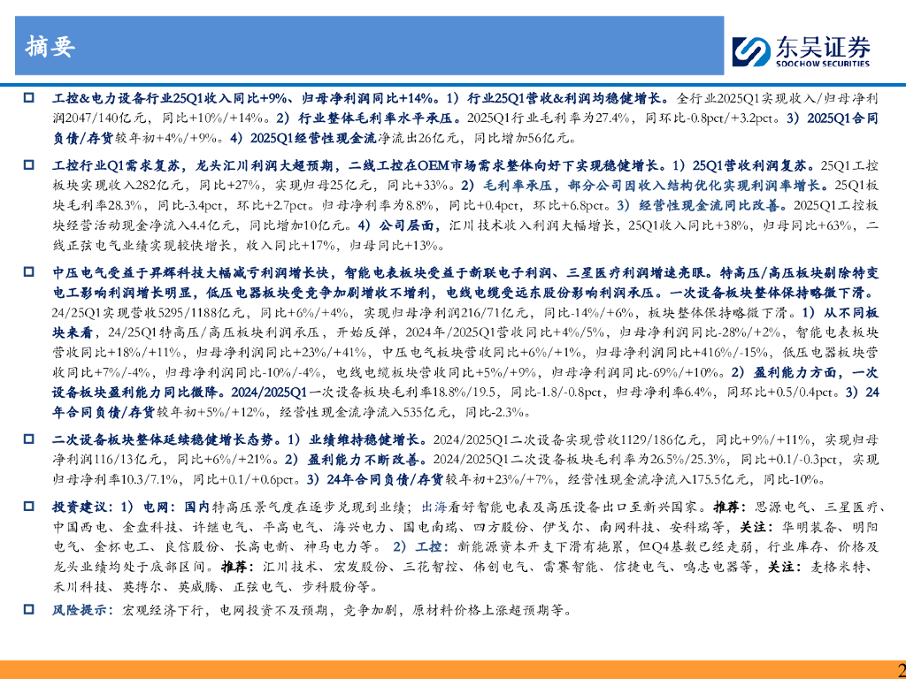 东吴证券:工控&电网24年报及25一季报总结:主业均稳健增长,期待人形&AI智能化兑现新增长曲线.pdf