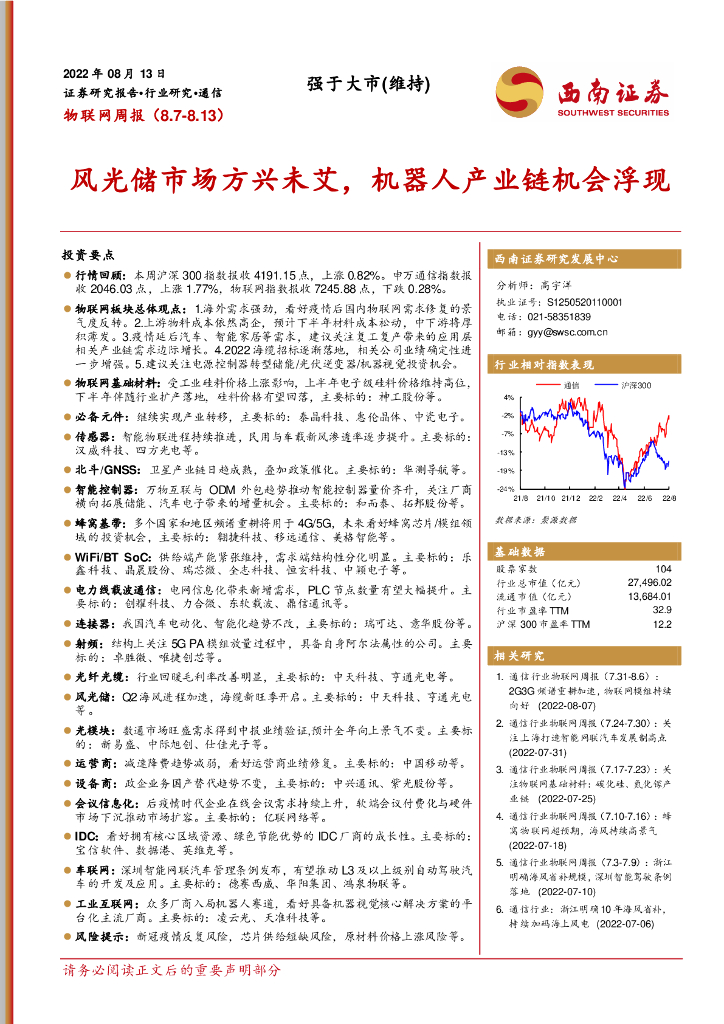 西南证券:物联网周报:风光储市场方兴未艾,机器人产业链机会浮现.pdf