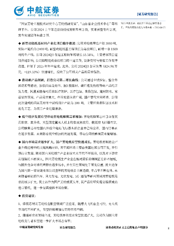中航证券:民士达(833394)-2024年三季报点评:24Q3创最好季度业绩,航空蜂窝销量增长.pdf