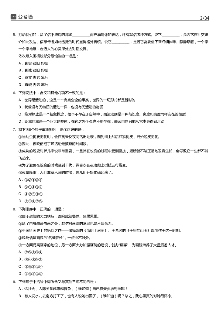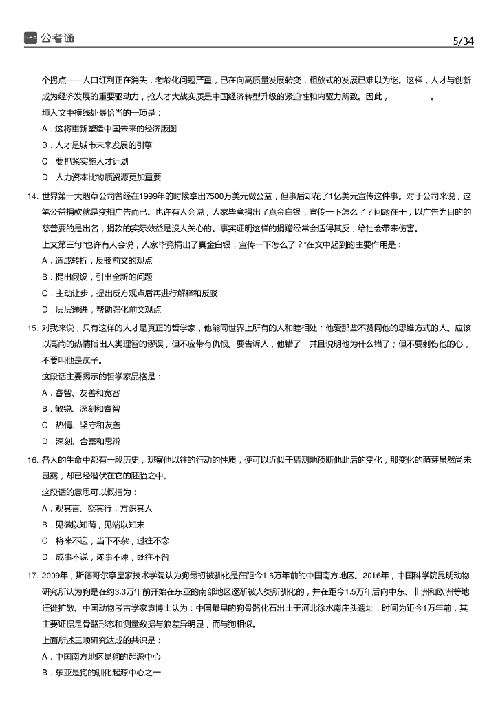 2019年上海公务员考试行测真题及答案(B卷).pdf