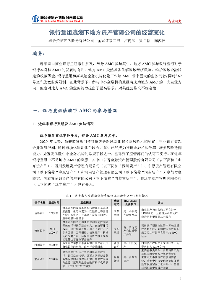联合资信:银行重组浪潮下地方资产管理公司的经营变化.pdf