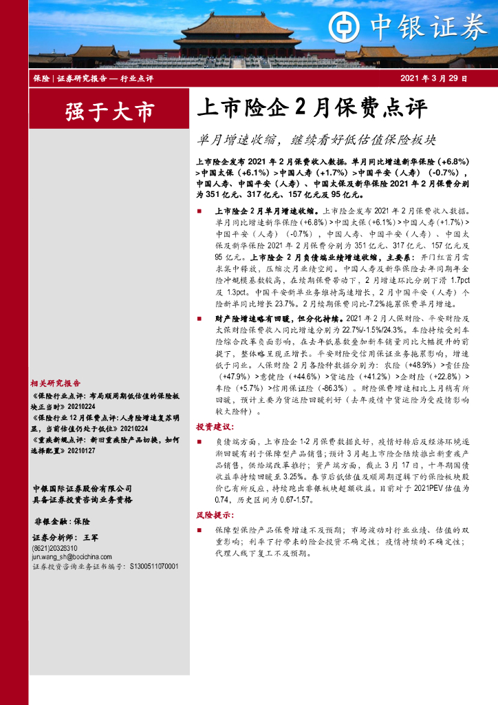 中银证券:保险:上市险企2月保费点评-单月增速收缩,继续看好低估值保险板块.pdf