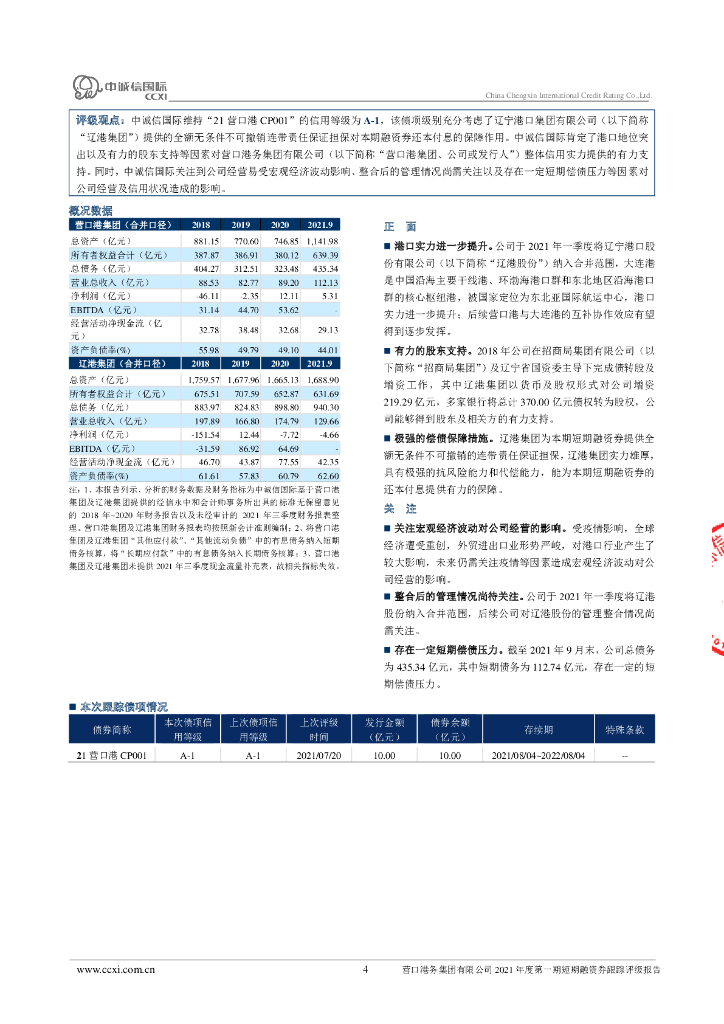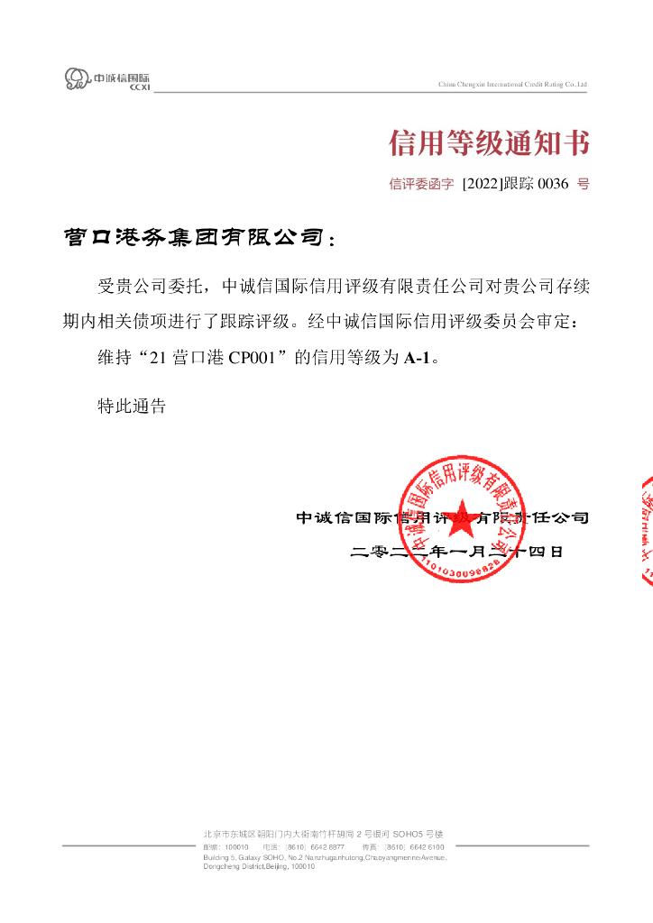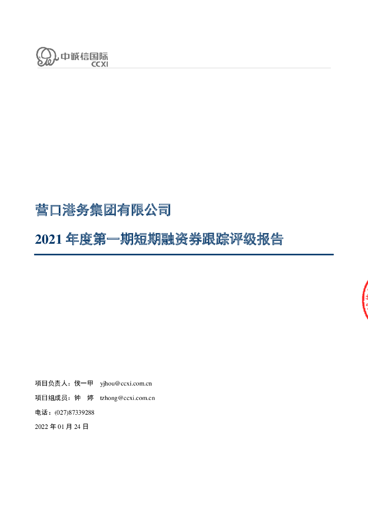 中诚信:营口港务集团有限公司2021年度第一期短期融资券跟踪评级报告.pdf
