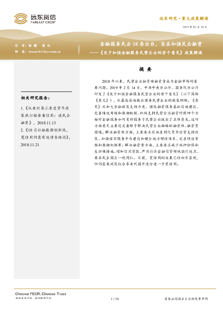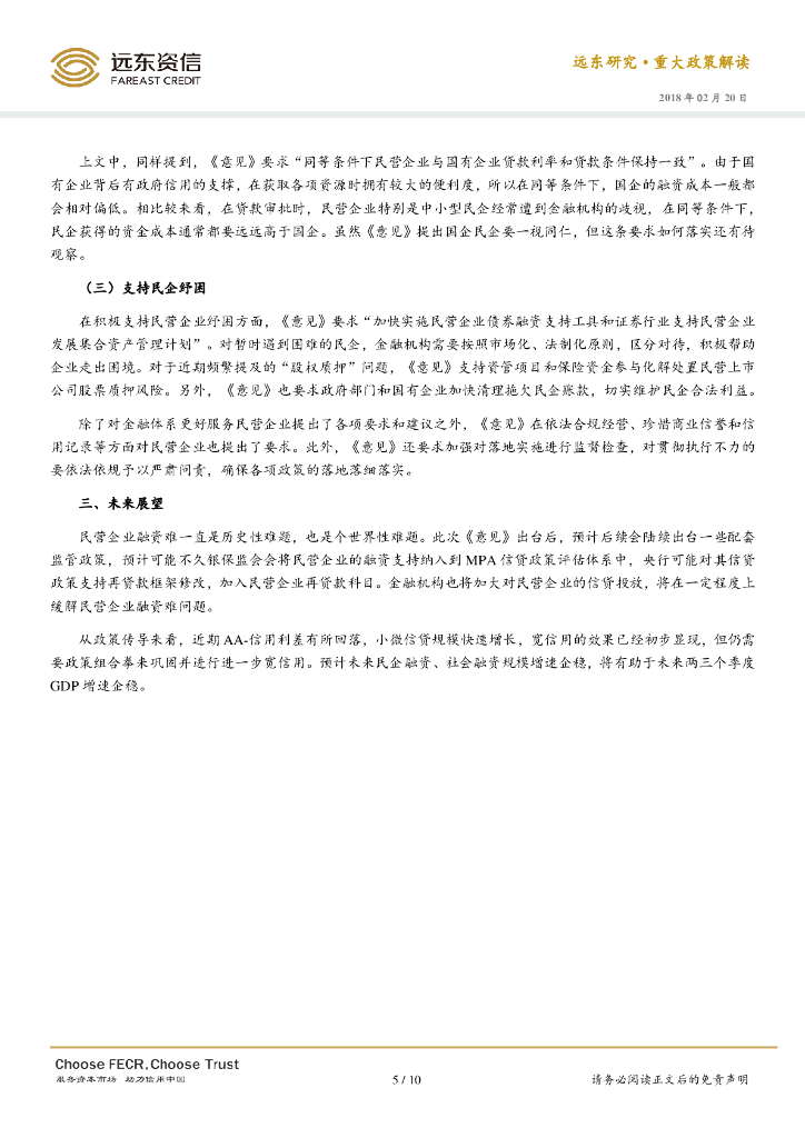 远东资信:金融服务民企18条出台,旨在加强民企融资——《关于加强金融服务民营企业的若干意见》政策解读.pdf