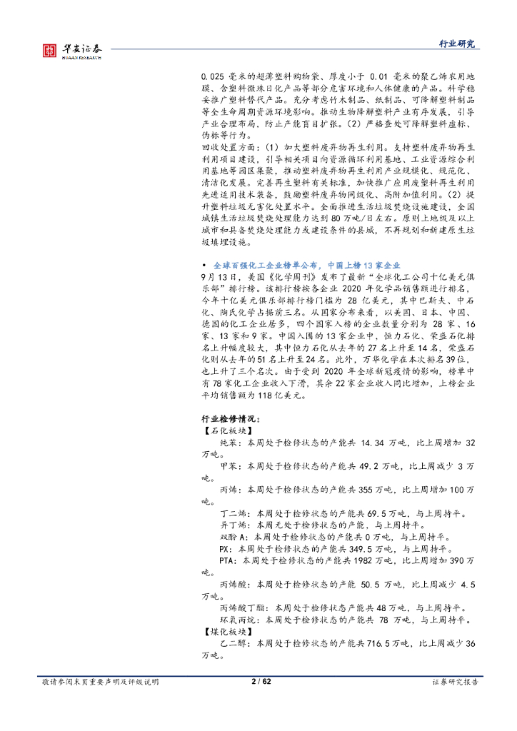 华安证券:化工行业周报:“十四五”塑料污染治理行动方案发布.pdf