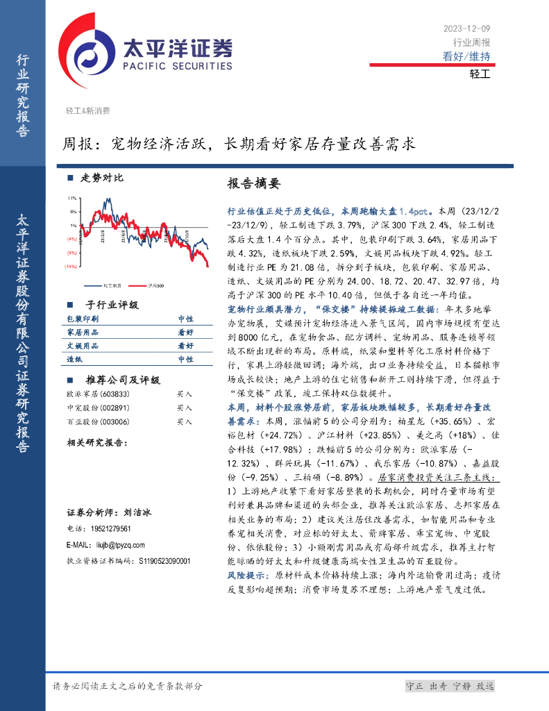 太平洋证券:轻工行业周报:宠物经济活跃,长期看好家居存量改善需求.pdf