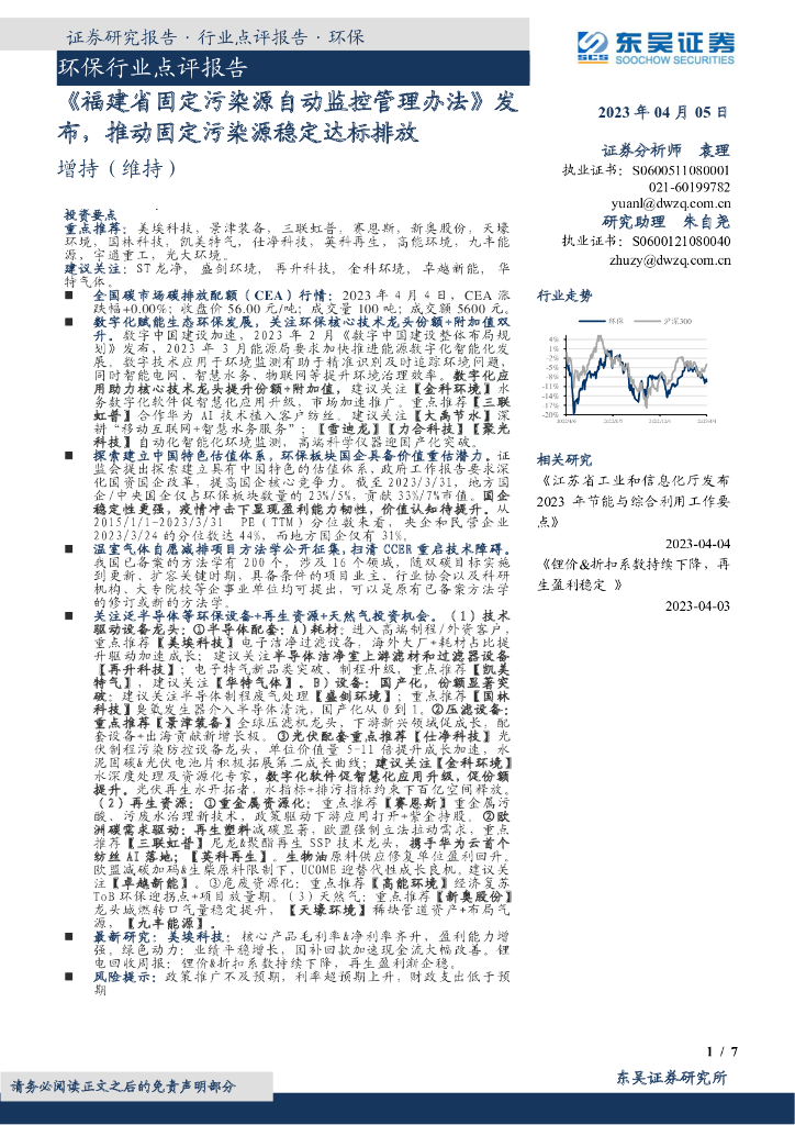 东吴证券:环保行业点评报告:《福建省固定污染源自动监控管理办法》发布,推动固定污染源稳定达标排放.pdf