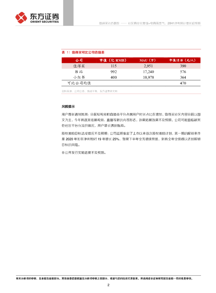 东方证券:值得买(300785)-社区商业化增强+电商高景气,20H1净利预计增长超预期.pdf