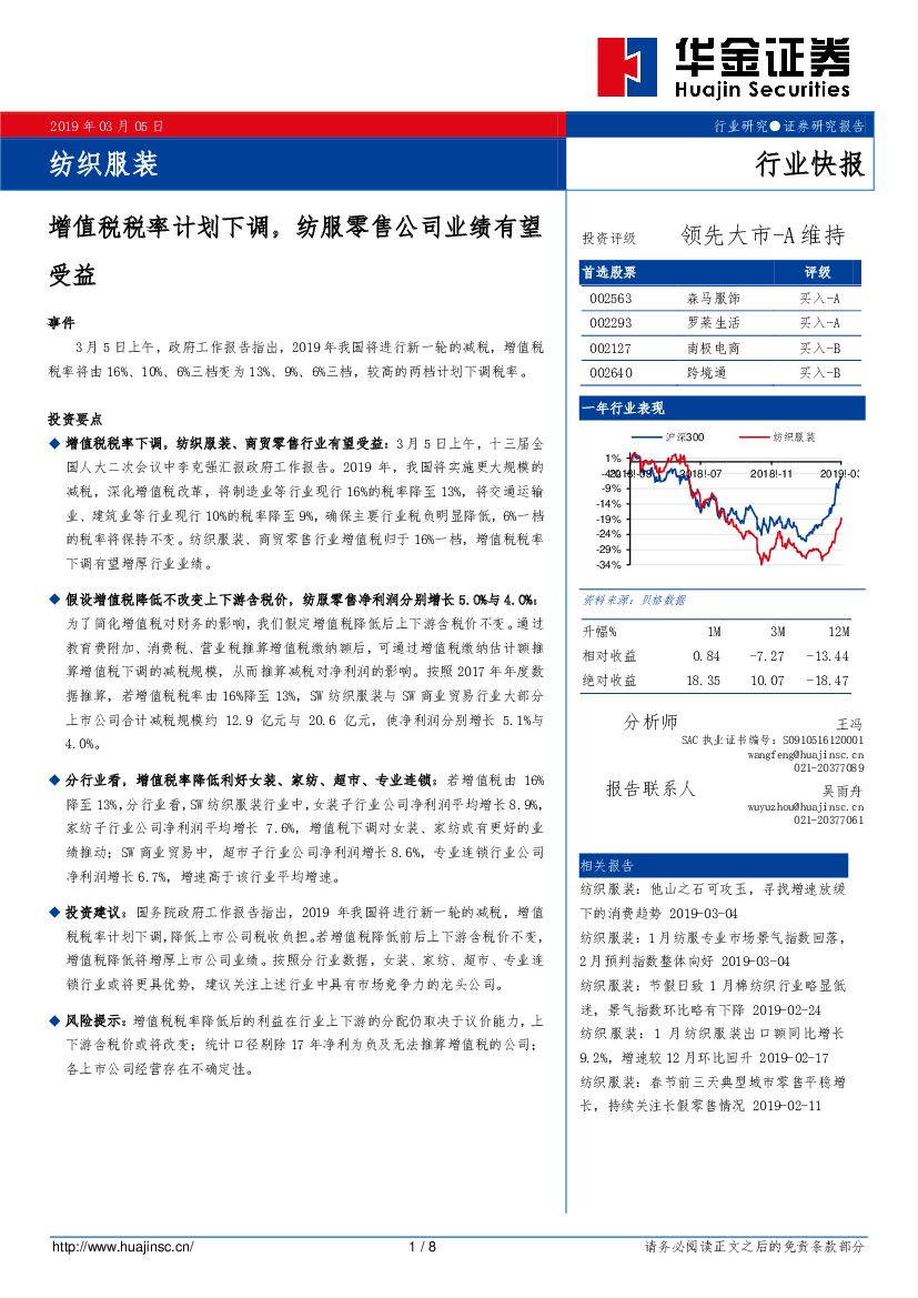华金证券:纺织服装行业快报:增值税税率计划下调,纺服零售公司业绩有望受益.pdf
