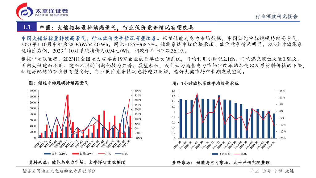 太平洋证券:储能行业2023年三季报总结:行业反转在即,布局时点临近.pdf